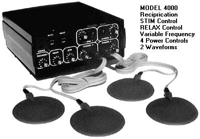 Interferential Stimulation, IF: This type of stimulation is characterized by the crossing of two electrical medium, independent frequencies that work together to effectively stimulate large impulse fibers. These frequencies interfere with the transmission of pain messages at the spinal cord level. Because of the frequency, the Interferential wave meets low impedance when crossing the skin to enter the underlying tissue. This deep tissue penetration can be adjusted to stimulate parasympathetic nerve fibers for increased blood flow. Interferential Stimulation differs from TENS because it allows a deeper penetration of the tissue with more comfort (compliance) and increased circulation. IF4000